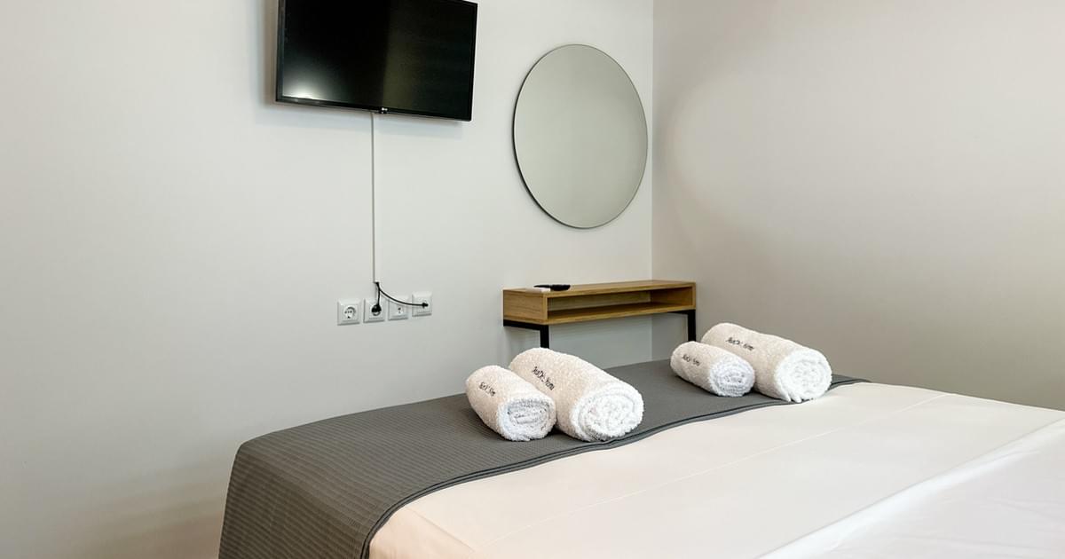 - Bed Type: 2 διπλά κρεβάτια και έναν καναπέ κρεβάτι